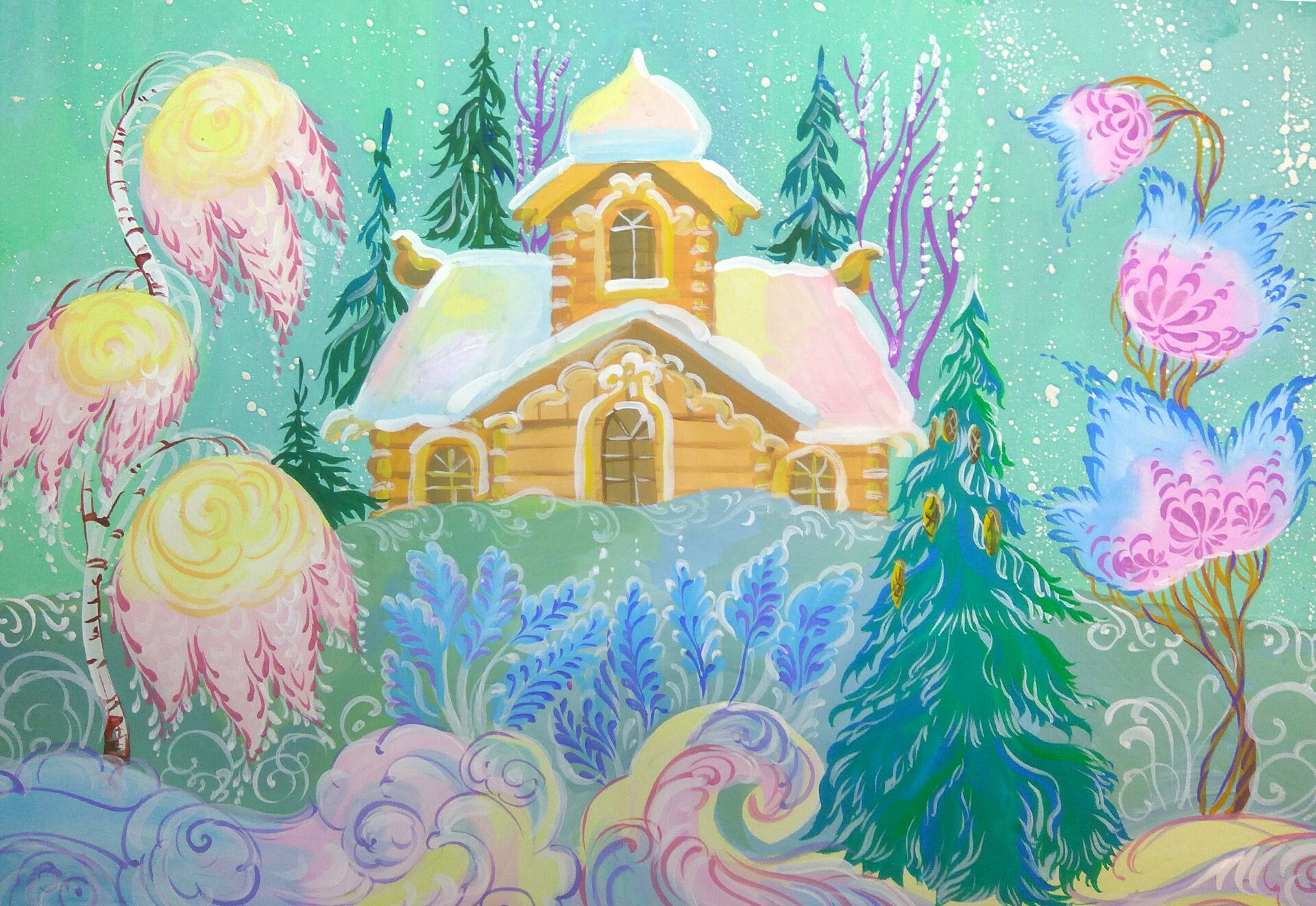 5 урок. Рисуем в цвете терем, передаем цвет деревьев